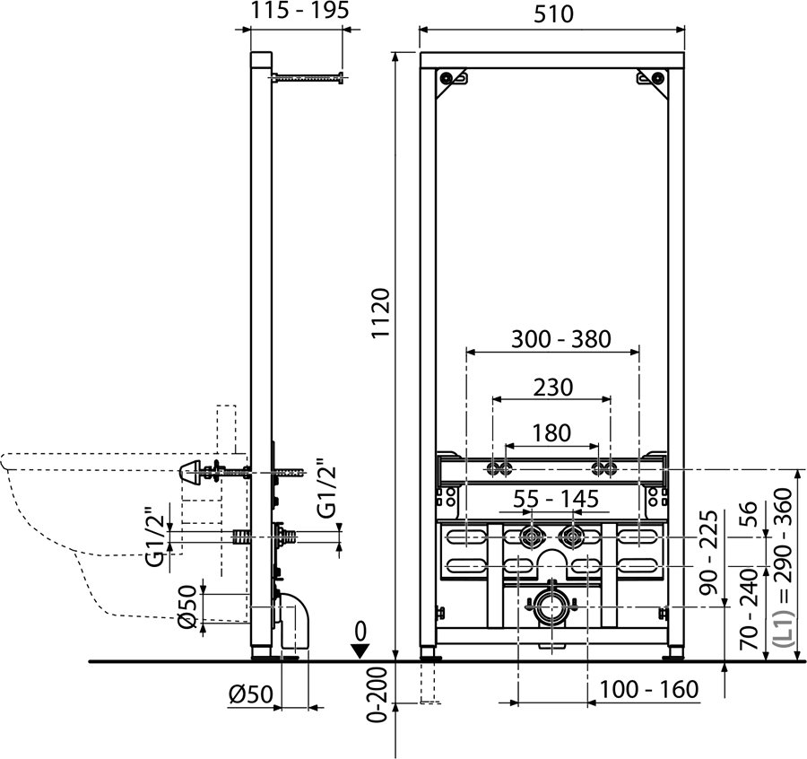 Instalační bidetový modul je určený pro závěsný bidet Uni Chrome s připojovací roztečí 180 nebo 230 mm a další bidety.Pro montáž před nosnou stěnu nebo do sádrokartonové konstrukce.